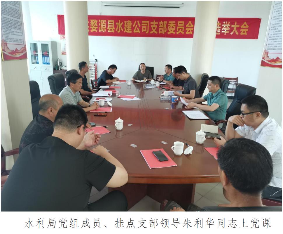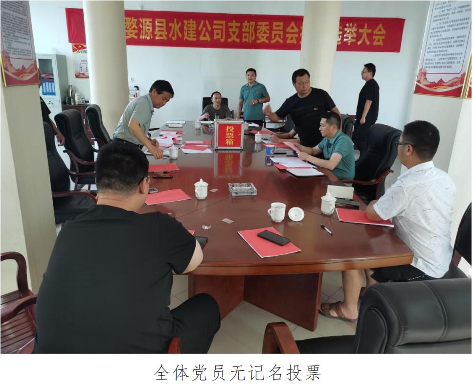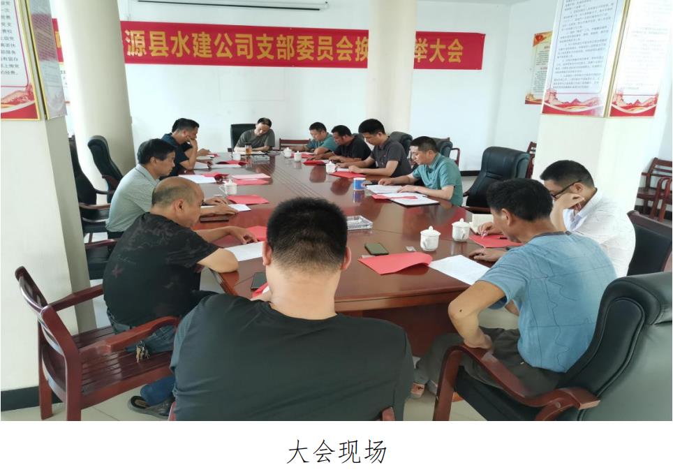 5月14日下午,縣水建公司黨支部召開了換屆選舉大會, 大會由黨支部書記王建同志主持,全體黨員參會??h水利局 黨組成員、掛點支部領導朱利華同志參加了大會。